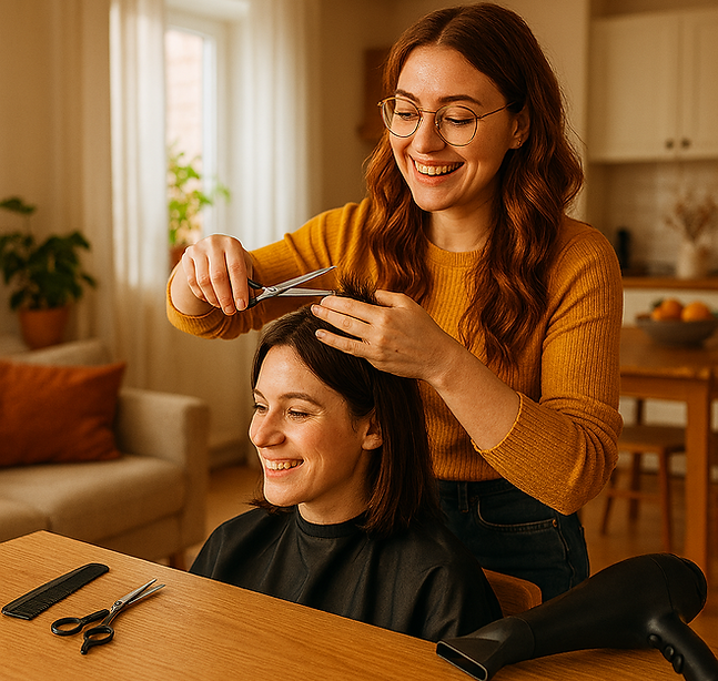 Experience the luxury of personalized hair services in the comfort of your own home, creating a relaxed and convenient atmosphere for your styling needs.